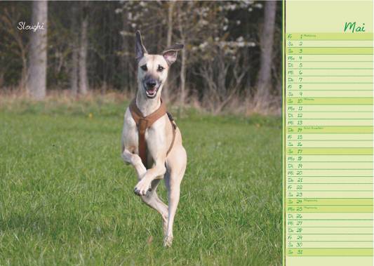 Unser Kalenderbild für den Wonnemonat Mai (keine Angst, das wird schon noch mit den Temperaturen ;-)): Sloughi-Hündin Anique, die seit gut einem Jahr bei Birgit und Matthias sein darf und sichtlich glücklich ist. Herzlichen Dank!
