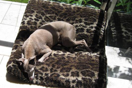 Nachdem Windspiel Pini gestorben ist, haben wir mal geschaut, was ihr damaliger Gefährte Alfredo (vermittelt Februar 2004)so macht. Na was wohl bei dem Wetter: In der Sonne aalen... Danke liebe Diana!