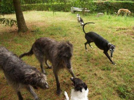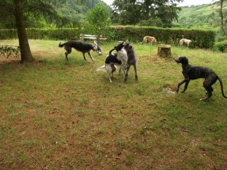 Die Galgos halten sich im Hintergrund auf, wenn diese Wilden loslegen.