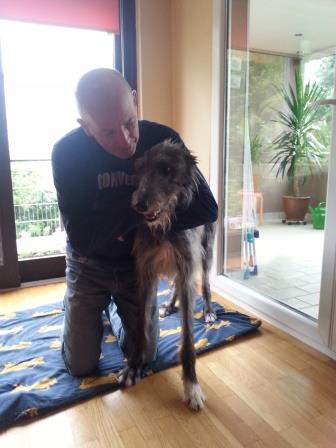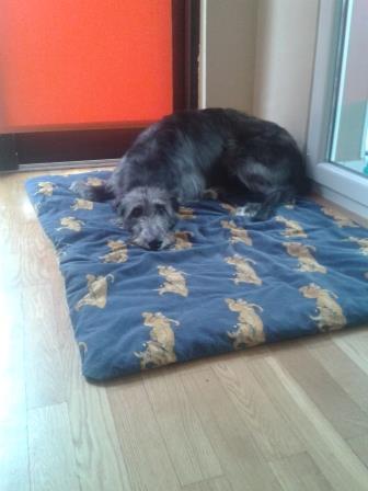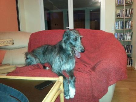 Am Samstag bekam unser Deerhound Kiffi Besuch. Er wollte nicht gestreichelt werden, er wollte nicht mal vom OG runterkommen und schon gleich gar nicht wollte er in das fremde Auto steigen. Wir mußten ihn ins Auto tragen:-(