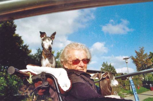 Sie fuhr jedoch jeden Tag gerne mit im Auto spazieren und am liebsten mit auf dem Rollstuhl meiner Mutter. Oder wenn es hieß "wir fahren zum Wirt" dann standen beide sofort Spalier.