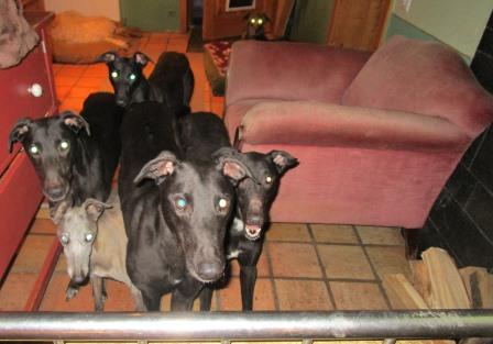 Zeitgleich fuhr Monika von Minden nach Flensburg, um vier Greyhounds einzupacken, auf der Rückfahrt nach Hannover hat sie noch eben Irish-Wolfhound-Hündin Jinny von ihrer Besitzerin übernommen und sich mit Jemima, der Pflegemama, getroffen. Weiter nach Hannover mit den Greys, dort Treffen mit Steffen und dem Affen:-) Hundewechsel. Äffle fährt mit Monika nach Bremen zur neuen Besitzerin Heike, Steffen mit den vier Greys bis in die Wüste. Es war Nacht, als die fünf bei uns eintrafen. Gestern wurde noch überlegt, wer denn so ein Schätzle verdient haben könnte... und flugs war alles klar. Steffen fuhr heute morgen los. Im Gepäck wie geplant unseren armen Azwawakh Bashou, der zitterte wie Espenlaub und kaum in Steffens Auto sitzen konnte und für Eva und Heinz-Georg den tollen, großen Greybuben mit Namen Survivor. Bashou nur Maulkorb und Leine, geht auch, armes Kerlchen... Steffen bis Frankfurt, wo Ludger dann seinen neuen Azi Bashou abholt, dann fährt Steffen noch bis Wiesbaden, um Survivor in sein neues Zuhause zu bringen und wieder nach Hause retour. Macht mal eben nur für Steffen an die 2000 km.