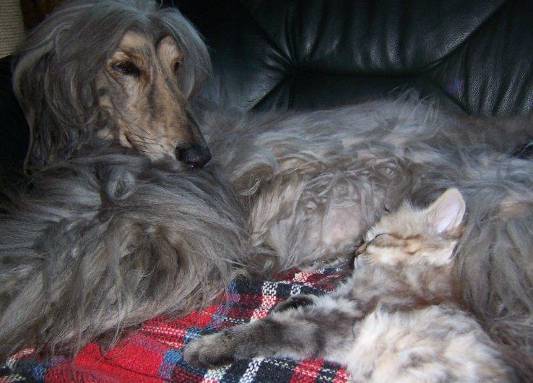 So sieht es aus, wenn eine katzenliebende Afghanen-Hündin ein Katzenbaby zur Gesellschaft bekommt. Unsere Chipsy (ehemals Felina, vermittelt Juni 2011). Vielen lieben Dank Ilona für die schönen Bilder!