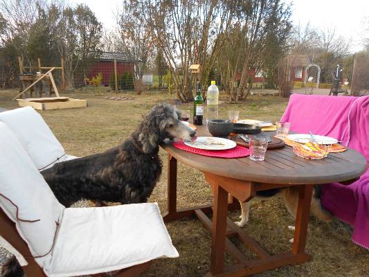 "Alf hat die Couch entdeckt, meistens teilt er sich diese mit Teo dem kleineren Galgo.