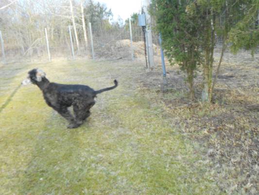 Er liebt es durch den Garten zu rennen. Meistens bei der Abendrunde. Wenn ich vorausgehe, hält er sich ganz im Hintergrund und dann kommt er angerast.