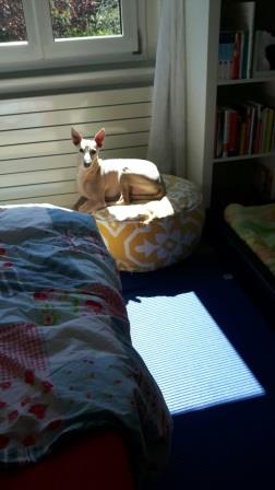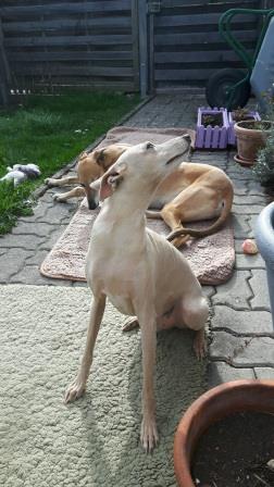 Wollte Dir gerne mal "hochoffiziell" ein paar Bilder schicken :-) Victor ist ein mega süsser kleiner Wichtigtuer, unser Wachhund par excellence, der den Magyar auch ungeniert und ungestraft in den Arsch zwickt, wenn dieser sich erdreist, diesen Job ebenfalls übernehmen zu wollen. Im Ehebett benötigt er den Platz von drei Elefanten und die restlichen Zwei- und Vierbeiner drappieren sich höflich um ihn herum. Als Gegenleistung pisst er nur noch in einen Hundekorb, wenn dieser frisch bezogen ist oder es draussen regnet, ansonsten glänzen wir mit einem stubenreinen Windspiel :-). Wir sind happy, lieben ihn herzlich und danken Dir für diesen fröhlichen Hund!!