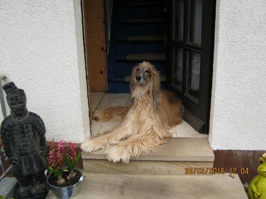 Auf dem ersten Bild sehen wir Prahvar auf seinem Lieblingsplatz; er bewacht Haus, Hof und Garten.