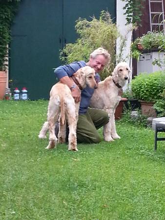 Afghanen sind einfach ganz besondere Geschöpfe. Den zwei Buben und all unseren anderen Hunden war nach 10 Minuten nämlich völlig klar, um wen es hier geht. Vishnu & Indy legten sich zu uns in die Küche und kein anderer kam in der folgenden Stunde vorbei.