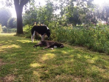 (Neulich hat Greystoke eines erschreckt. Nina und Rüdiger habn nich gesehn, dasss da die räder von die leute imm gras lagen. Aber mein buddyguard hats gesehn und musst natürlich kucken was die machen. Die ham geknuutscht!!! Und sich ein bisschen erschreckt erschrocken als da Greystokes lannge Nase kam. Hihi.)