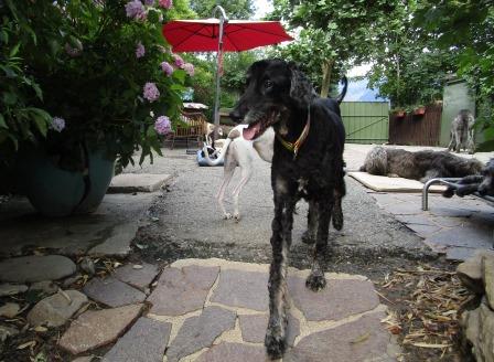 Er hatte letzten Freitag mehrere Epilepsie-Anfälle. Ich hatte noch versucht, diese mittels einem Diazepam-Zäpfchen abzumildern. Danach war nichts mehr wie vorher. Zwei Tage torkelte er durch Haus und Garten, dann schien er sich ganz langsam wieder zu erholen. Als er anfing zu husten, habe ich sofort Antibiotika gegeben. Auch, wenn mich die Globulifraktion nie verstehen wird, wenn so ein betagter Hund hustet, muß man schnell sein, keine Experimente. Trotzdem war alles umsonst. Seine Lunge voller Schleim, er bekam kaum noch Luft, wir mußten ihn gestern erlösen.
