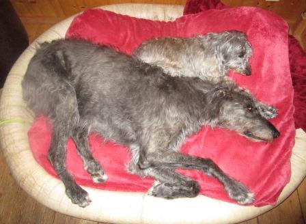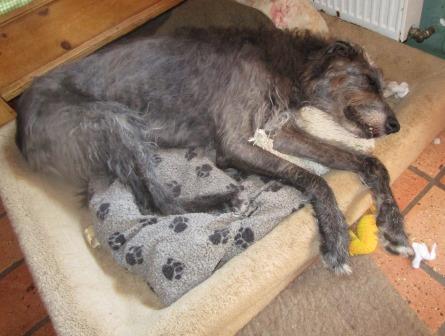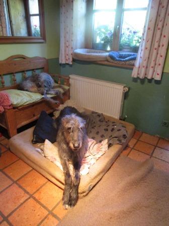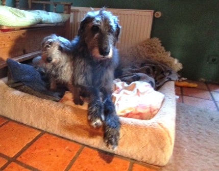 Und weiter gehts mit Caoimhe. Sie hat gestern Abend gehustet und ebenfalls sofort Antitiotika bekommen, heute Morgen hat sie so geröchelt, dass wir um halb sieben unseren Tierarzt aus dem Bett klingelten. Sie hat erhöhte Temperatur, hustet, das Antibiotika gestern war richtig aber das Röntgenbild brachte eine noch schrecklichere Nachricht: Ein faustgroßer Lungentumor.