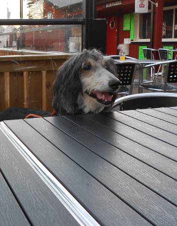 Wasserfotos sind anbei. Es sind Wasserfotos und keine Strandfotos. Das erste Mal außerhalb ohne Leine. Dann gibt es noch ein Foto im Restaurant. Das war auch echt witzig. Der gute Alf hat das Restaurant gut unterhalten, die anderen Gäste hatten echt ihren Spaß. Die Schweden sind da ziemlich cool. Kinder und Hunde haben Freifahrtschein.