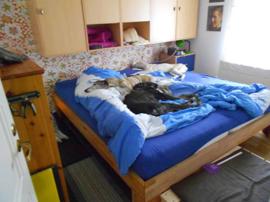 "Alf hat sich echt gut eingelebt und hat mich voll im Griff. :):) Hundefrühstück gibt es jetzt zu hundefreundlichen Zeiten, morgens um 6 Uhr 30. Die Galgos sind echt begeistert, daß das Frühstück um 1,5 Std. vorverlegt wurde.