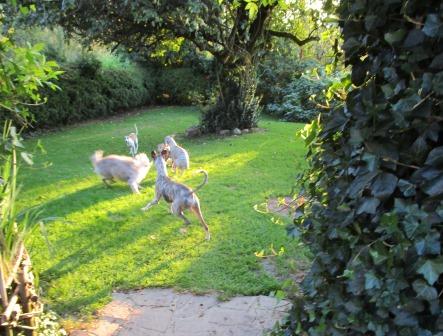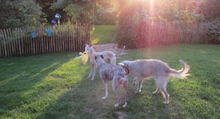Nur ein einziges Mal lief er aus der Spur, am ersten Abend, als er sich bedrängt fühlte, das haben wir sofort "korrigiert":-) Und seither ist Floyd absolut lieb zu unserem Rudel. Bissle abgenommen hat er auch. Wir freuen uns, ihn heute so zu sehen: