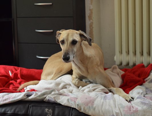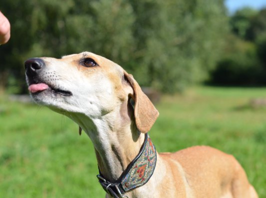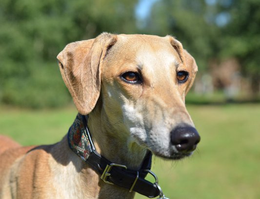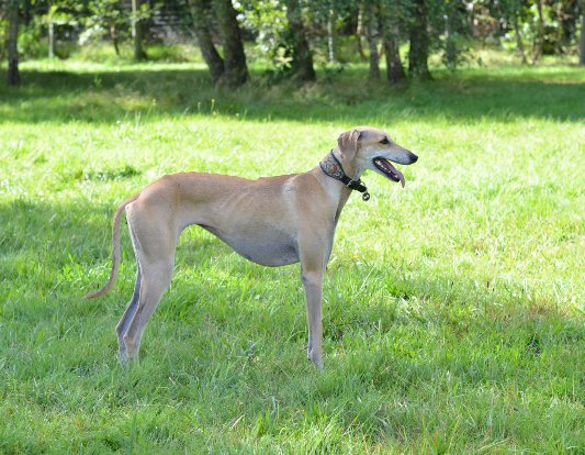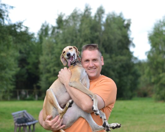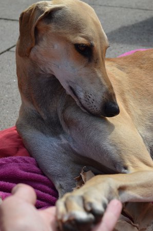 Auch sie gehört eher zu der Sorte "nicht-einfacher-Sloughi". Dennoch sind ihre Menschen in den letzten sieben Jahren so richtige Sloughi-Leute geworden. Mittlerweile besitzen sie vier Sloughi-Mädels. Die Nummer vier ist unsere Joumana, die ein echter Sonnenschein-Sloughi ist (wie man auf dem Foto sehen kann, strahlt auch der Besitzer:)