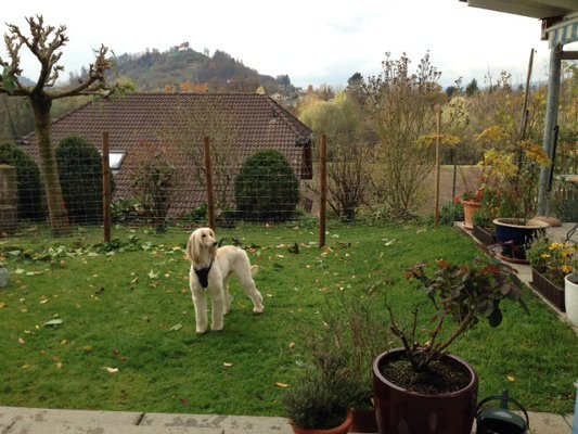 Immerhin kam er heute Morgen schon zur Begrüßung aus seinem Schüsselchen heraus. Ganz schön höflich und mutig. Treppen kennt er scheinbar nicht. Deshalb hat er bisher nur das Erdgeschoss erkundet. Aber er hat ja Zeit. Ich glaube er ist sich einfach auch nicht sicher, dass hier nicht tatsächlich doch noch so ein anderer Rabauke lebt. Deshalb erst mal alle Fluchtwege offen halten. Bald, bald wird der Geniesermodus des Einzelhundes sichtbar werden."