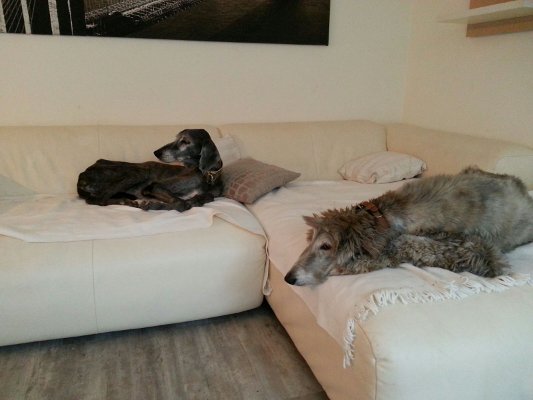 Unsere blaue-Affen-Liebhaberin ließ sich nicht schrecken, packte das Tierchen ein und gab Zuhause angekommen, sofort Meldung, daß der alte Mann von Enzo (ehemals Don Juan, vermittelt März 2016) freudig begrüßt worden sei und der noch vorhandene junge Barsoi Bridj am liebsten die ganze Zeit abschlecken würde...