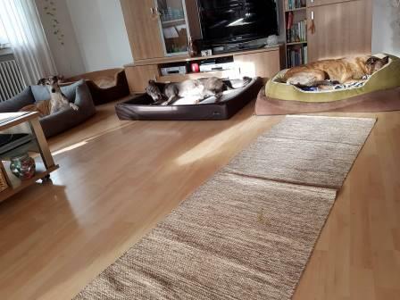 Aaaaber, das war von Anfang an klar, dass er bleibt, also uns zumindest. Erstens waren beide Hunde, Grey Leo und Barsoi Juri von Beginn an zum Behalten gedacht, nur wir haben gesagt, cool bleiben, erstmal schauen... und zweitens, liebe Karin, wer so einen Hund wieder gehen lassen kann, ist entweder nicht ganz bei Trost oder ersäuft drin.