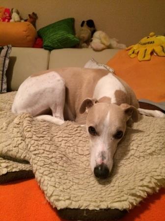 Sie wartet noch auf eine passende ältere Whippetdame zum extremknuddeln, da wird sich sicher wieder etwas bei Euch finden!