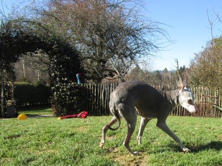 Bei dem herrlichen Wetter macht unsere kleine Paten-Agnes Bocksprünge durch den Garten. Leider immer, wenn wir keine Kamera zur Hand haben:-)