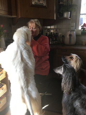 Unsere Edith (die Blonde im Hintergrund) hatte Besuch von unserer Jade (die Blaue, vermittelt Februar 2016) und Freundin Miga.