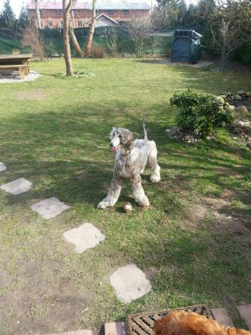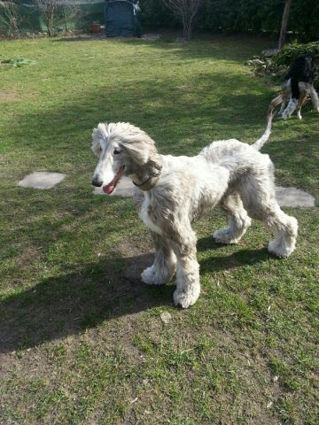 Er macht gerade Urlaub bei der Familie seines Barsoi-Kumpels.
