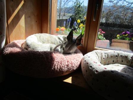 Hannah schlief von Beginn an immer im Bett vom Sohnemann. Auch als dieser auszog, machte sie es sich nachts in seinem Bett bequem, zusammen mit Joda und natürlich Diva. Auf dem Sofa scharten sich die Butzis allabendlich um sie und wenns ihr zu viel wurde, hüpfte sie in ihr Körbchen auf der Ofenbank. Beim Essen war sie immer unter den Ersten, die in der Küche standen, nur in den letzten Tagen blieb immer was in ihrer Schüssel liegen.