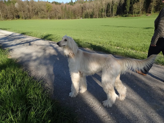 Alles in allem ist Sansi wieder ein ganz anderer Afghane als alle die wir wir bis jetzt hatten! Er ist sehr ergeben, fordert fast nichts, braucht einen sehr feinen Umgang. Dafür ist er ein richtig putziger Puschel, immer fröhlich und neugierig und gehorcht für einen Afghanen viel zu gut. Das treiben wir ihm schon noch aus ;-)