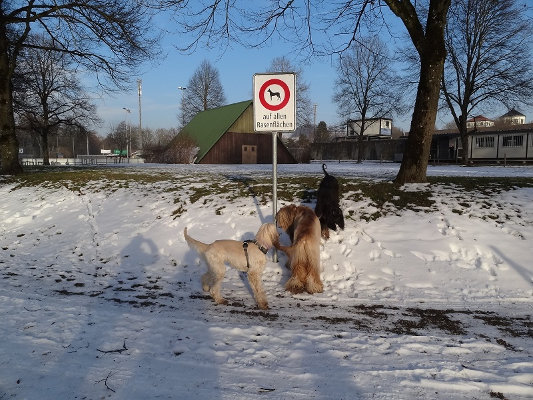 Mit der neu gewonnen Körperfitness stand einem ersten Besuch auf der Windhundrennbahn nichts mehr im Wege. Ein Probeschnuppern am frisch abgezogenen Hasenfell. Uninteressant. Aber die drei Afghanenmädchen, die im Gartenrestaurant dabei waren – die fand er gut. Wir gehen dann mal an ein Training…