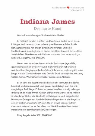 Hier der zweite Strickwutz: Indiana James - auch wieder die Ebay-Artikelnummer am Ende seines höchst interessanten Lebenslaufs :-)