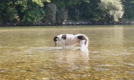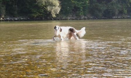Das Baden bzw. Wandern durch den Lech hat er so richtig für sich entdeckt (siehe Bilder) - reinsteigen, rumwaten, in die Strömung schauen oder mit Odin im seichten Wasser am Ufer entlang galoppieren ... mir geht einfach jedesmal das Herz auf, wenn ich ihm dabei zusehe - weil er es einfach verdient hat, nach dem bisherigen Leben NUR geniessen.