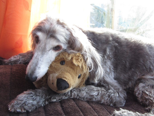 Sie "findet" auf ihren Lebensmittel-Organisationsrunden immer ein Stückchen Käse und lässt dafür unseren Frühstückstisch links liegen. Wir sind sehr glücklich, dass Sie sie uns vor zwei Jahren anvertraut haben, obwohl wir zu der Zeit Null Ahnung in Sachen Afghanenpflege besaßen. Aber auch hier standen Sie mir mit Rat und Tat zur Seite.
