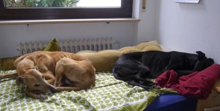 Saphi war bei uns rundum problemlos und so macht sie auch im neuen Zuhause weiter. Ihr neuer Freund darf mit ihr kuscheln (gibt ja etliche Hunde, die sowas nicht mögen, z.B. unsere Crimi:-) und auch andere Hunde werden ebenfalls freudig begrüsst.