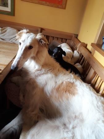 Unsere kleine Melodie fühlt sich berufen, auf der Bank bei den Windspielen zu schlafen. Also wenigstens versucht sie es :-)