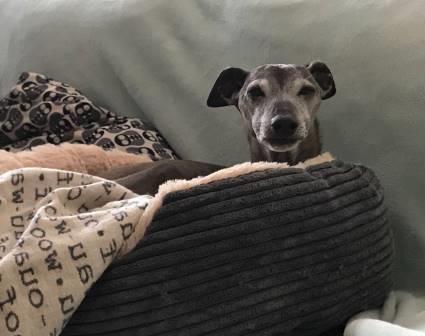 Amicelli (verm. April 2006) bekam zu seinem dreizehnten Geburtstag zwar wieder kein zweites Butzi zum Kuscheln, aber er guckt trotzdem ganz glücklich aus der Wäsche:-)))