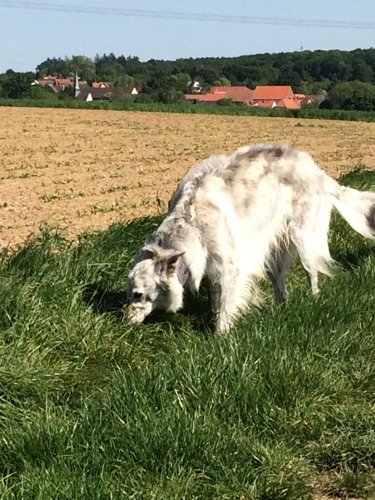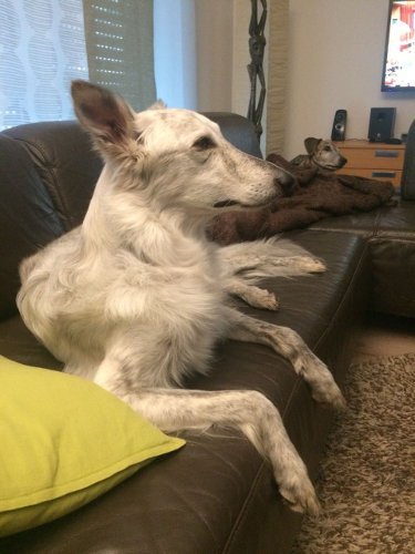 Er ist ein ganz friedlicher, in sich ruhender Hund gworden. Einfach klasse.