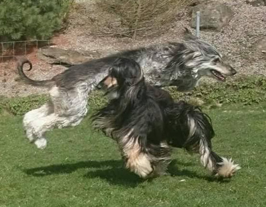 Im Frühjahr dieses Jahres wurde es für Elìza richtig toll, denn wir hatten ein 15 Monate junges, verspieltes Afghanenmädchen zu uns geholt. Sofort hat Elisa ihr den Platz des Nesthäkchens abgegeben und wurde in wenigen Wochen richtig "groß"! Das hat uns wirklich überrascht. Nun ist Elisa 4 Jahre und 3 Monate alt und sie spielt, springt und hüpft noch jeden Tag mit ihrer jungen Freundin.