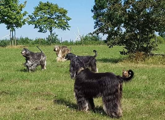 In unser 5er Rudel hat sie sich problemlos eingefügt. Sie hat unsere zwei gemütlichen Afghanendamen Lady und Gilliè zwar oft geneckt und genervt, aber sie ist sehr klug und wusste genau, wann die Grenze erreicht war.
