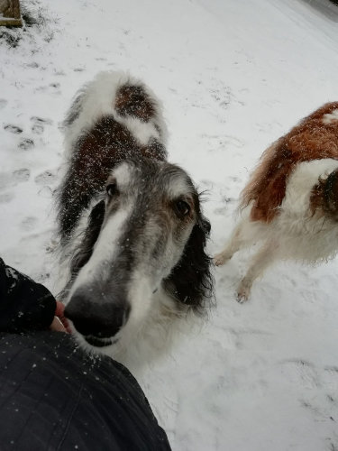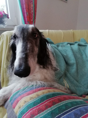 "Vor 9 Jahren habe ich durch die Windhundhilfe meinen Hund Keanu gefunden. Keanu ist mittlerweile 11 1/2 Jahre und mit meiner anderen Barsoi-Hündin super glücklich. Es geht ihm gesundheitlich altersentsprechend. Die Spaziergänge werden kürzer aber er hält sich noch gut auf den Beinen.