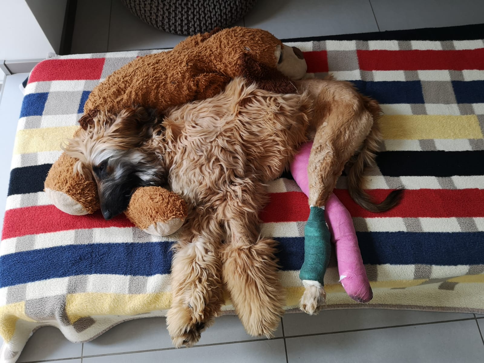 Eigentlich bekamen wir ihn wegen Patellaluxation einseitig aufgrund eines Traumas. Zügig stellte sich heraus, dass dem leider nicht so war, sondern er eine beidseitige nicht erworbene Patellaluxation hat.