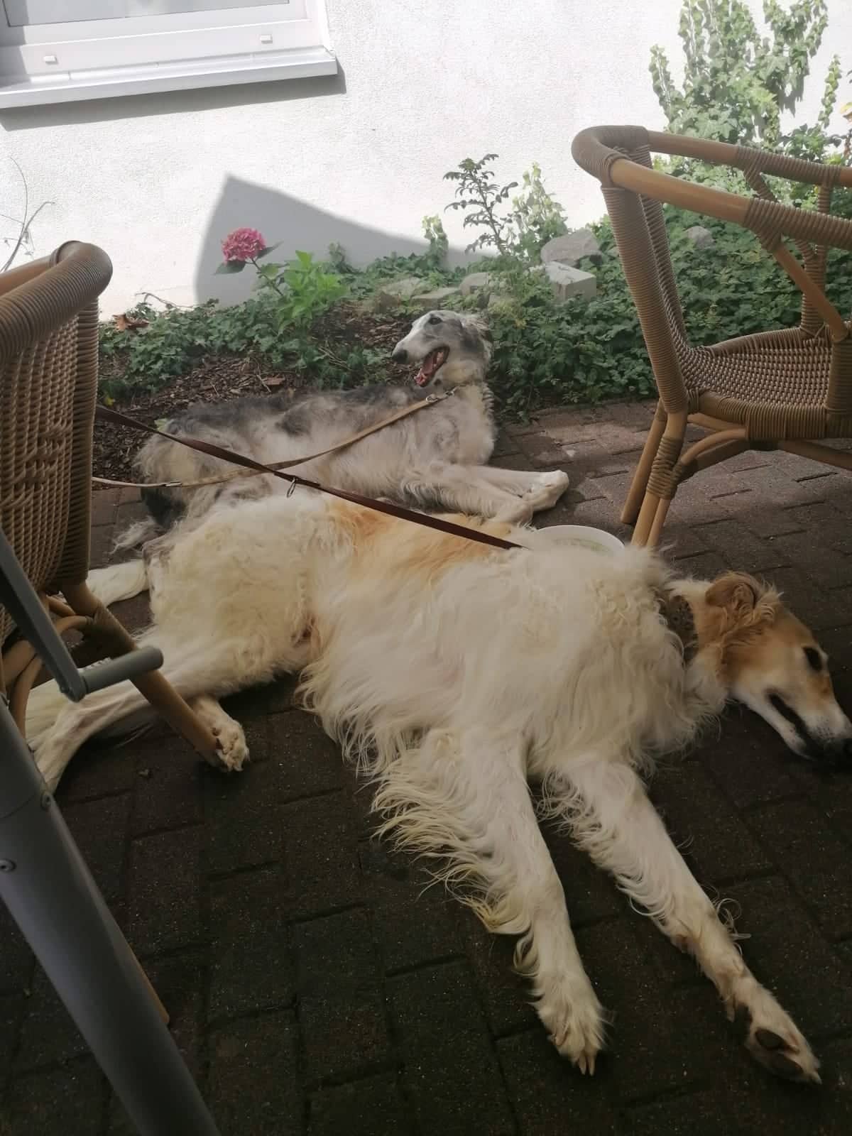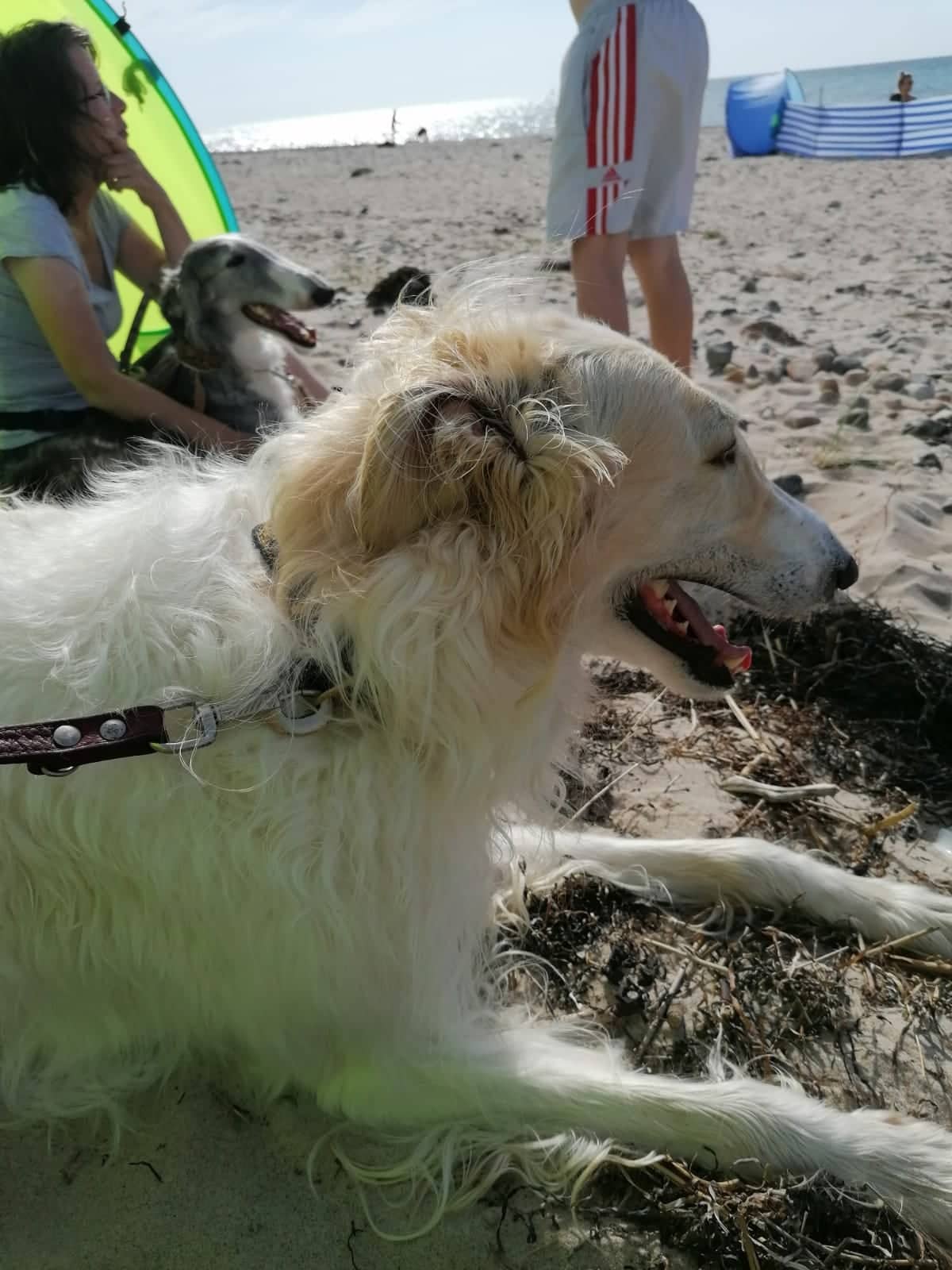 Auch unsere Barsois Balduin (verm. Dez. 2016) und Alexa (verm. Mai 2017) haben uns Grüße aus dem Urlaub geschickt.