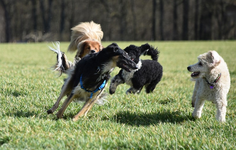 2x in der Woche treffe ich mich mit anderen Vierbeinern -so an die 8 Mann stark- zum Spaziergang . Dann ist auf freier Fläche tollen und toben angesagt. Da bin ich in meinem Element und glücklich.