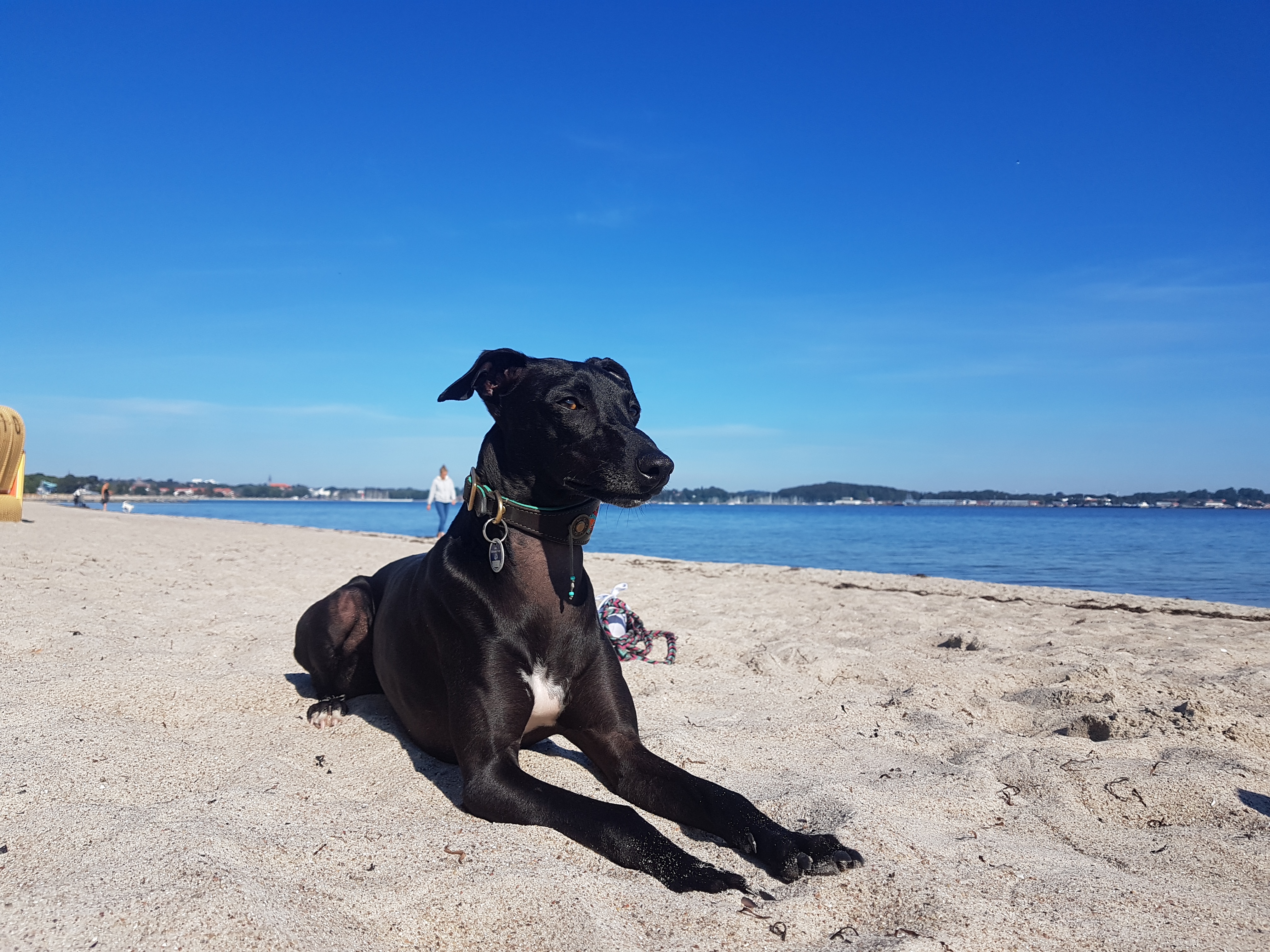 Er ist sozialisiert und kann draußen in entsprechenden Gebieten ohne Leine laufen.