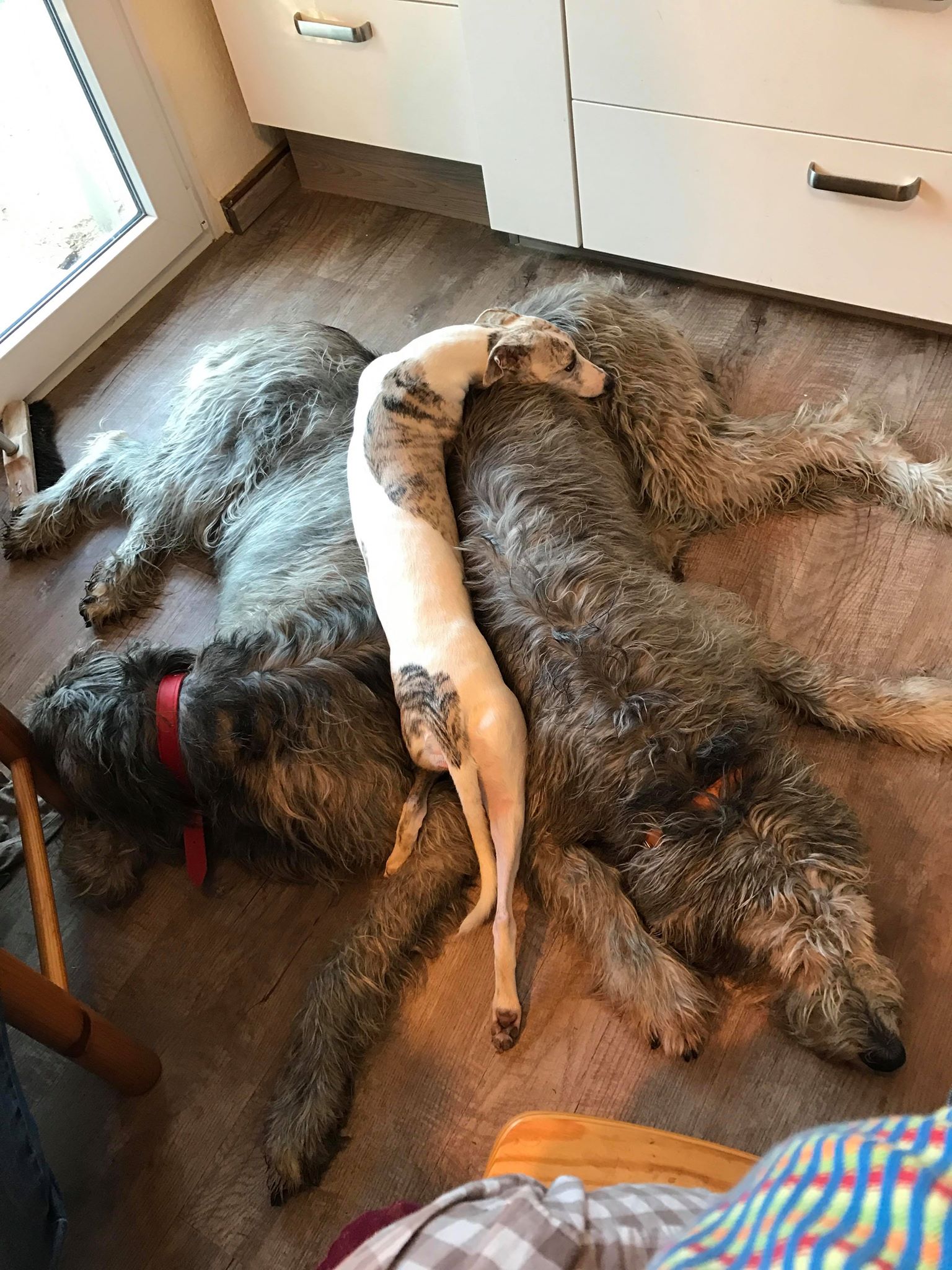 als ich vor etwas über vier Jahren unter dem Foto von Thelma und Luis verlinkt wurde, wollten wir eigentlich nur einem Iren. Mein Mann, der noch nie einen Iren hatte sagte dann, dass man die zwei nicht trennen kann. Also angerufen, Probebesuch bei uns, Telefonat mit den Besitzern... Hotel gebucht und hingefahren. Es passte sofort. Als mein Mann mir sagte, dass wir die zwei mitnehmen, weinte ich vor Glück. Endlich wieder Iren in meinem Leben. Ich hatte das Glück mit dieser Rasse groß zu werden. Und auch die beiden waren traumhafte Hunde. Camping, Trubel, große Familie- nichts brachte sie aus der Ruhe. Unsere jüngste Tochter durfte mit ihnen laufen lernen, die Kinder sie als Kopfkissen benutzen. 2017 mussten wir die ältere von beiden-Thelma - mit 8,5 Jahren gehen lassen und es tat so unwahrscheinlich weh... Gestern war es dann soweit und Luise musste erlöst werden. Sie hatte Knochenkrebs und konnte nicht mehr aufstehen. Es tut so unwahrscheinlich weh und diese Worte zu schreiben schmerzt noch mehr. Wer einmal einen Iren hat weiß, dass sie besonders sind, Seelenhunde eben. Sie ist schnell und friedlich auf meinem Schoß eingeschlafen. Danke euch fürs Vermitteln und euer Vertrauen in uns.“